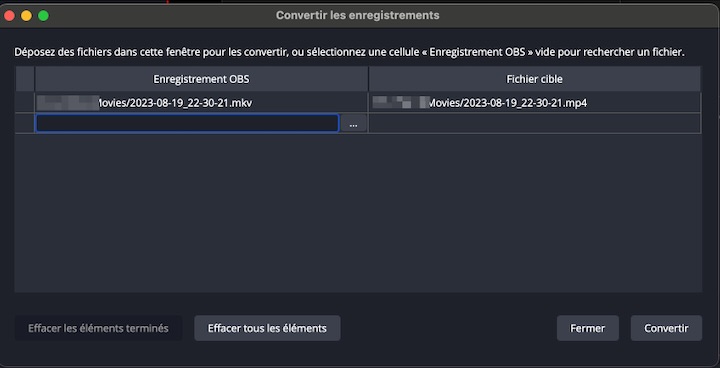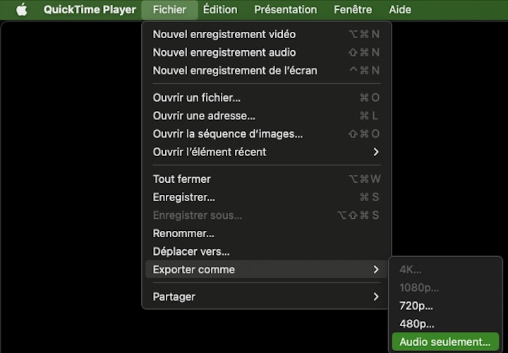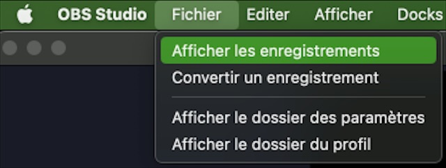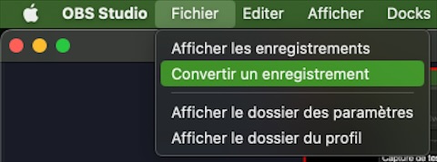Pour convertir le fichier obtenu en mp4 ou .move par exemple, sélectionnez dans le menu Afficher > Convertir un enregistrement.