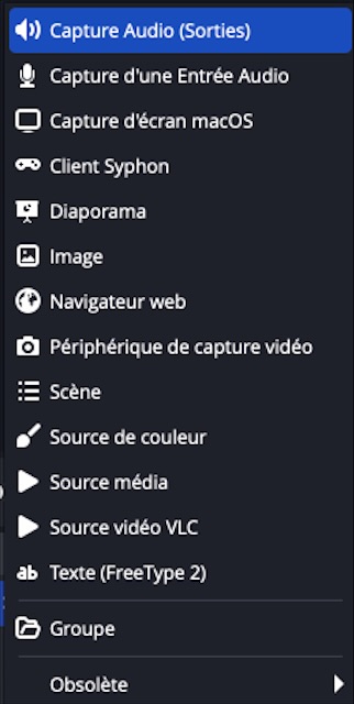 J’ai ensuite créé une scène Audio avec la source Audio Output Capture à laquelle j’ai associé Blackhole (image 2). L’enregistrement génère un ficher video mp4, que je convertis avec QuickTime en fichier audio m4a (image 4). Il y a peut-être plus simple, mais pour le moment, je n’ai pas trouvé de logiciel open source compatible avec un Mac M1 qui enregistre l’écran et/ou l’audio interne. D’ailleurs, pour être plus précise, Streamlabs enregistre l’audio seul, mais dans un format vidéo !