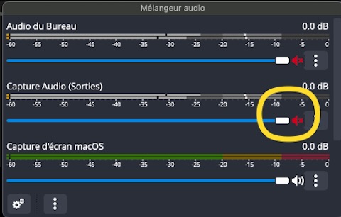 Si vous ne souhaitez ni enregistrer votre voix, ni le son de l’ordinateur, dans le Mélangeur audio, cliquez sur l’icône des hauts-parleurs pour le désactiver.