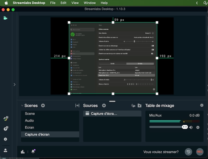 Une fois Streamlabs installé, le fonctionnement est similaire à OBS Studio.