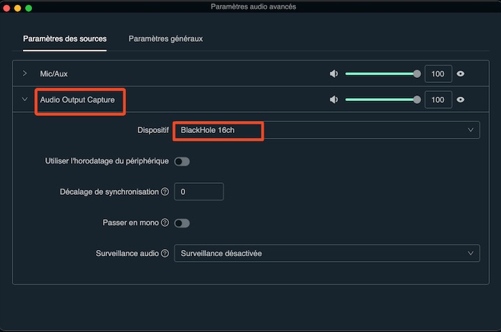 Pour capter le son interne du Mac, il est nécessaire d’installer une extension, BlackHole est compatible avec les Mac Intel et M1. Il faut sélectionner BlackHole 16ch. J’avais dans un premier temps installé BlackHole 2ch, la page de BlackHole propose également plusieurs désinstallateurs. Il suffit de télécharger celui dont on a besoin, puis un double clic sur le fichier désinstalle BlackHole.