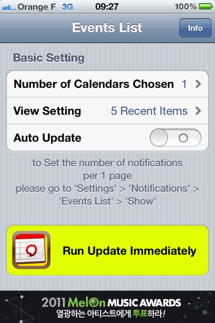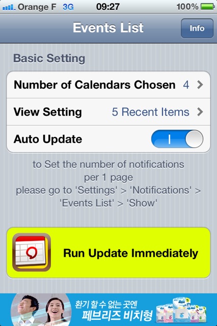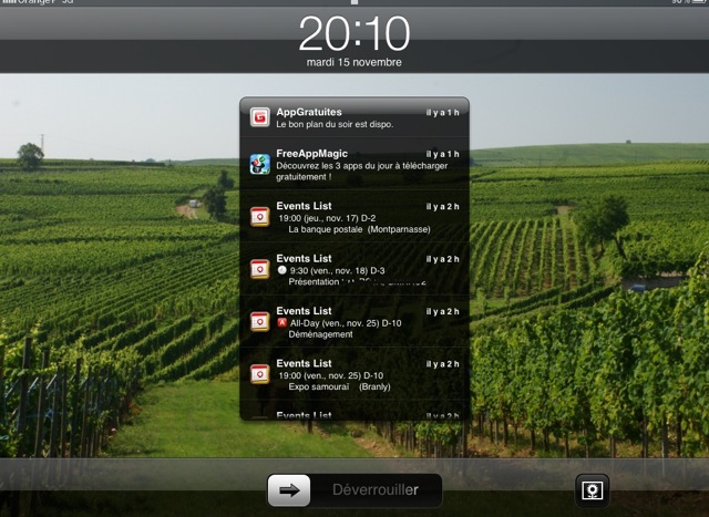 Events List, application gratuite, utilise la nouvelle fonctionnalité d’iOS 5 et permet d’afficher, dans la barre de notifications, les événements à venir.