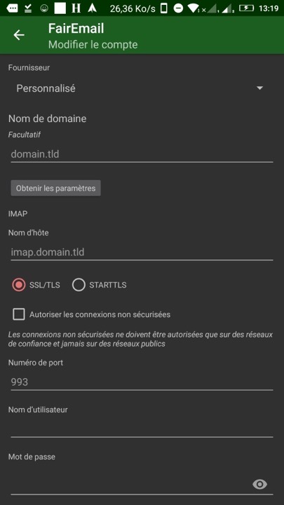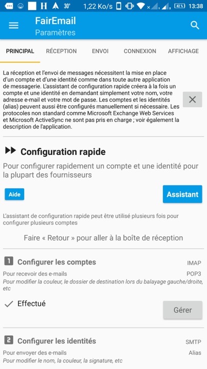 Pour la plupart des fournisseurs d’accès, la configuration des comptes est automatique.