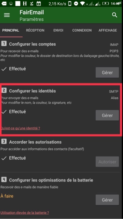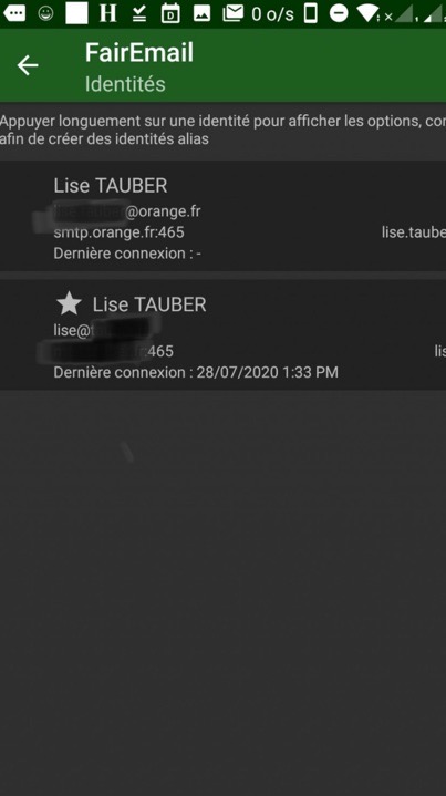 Pour les serveurs particuliers, la configuration est un peu plus longue… Il faut pour chacun des comptes paramétrer le serveur d’envoi, ici nommé « identité ».