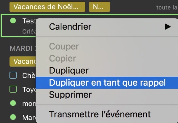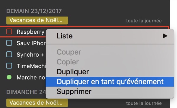 Autre option bienvenue, la duplication d’un élément en tâche ou en événement.