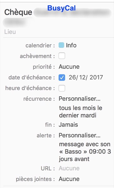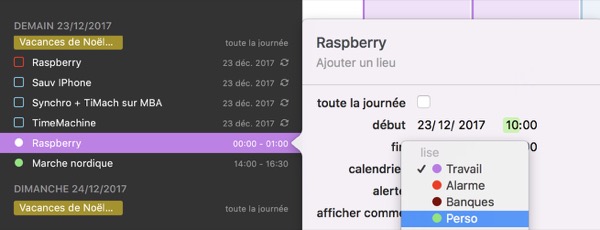 Comme avec BusyCal, on peut utiliser les mêmes catégories à la fois pour les événements et les tâches.