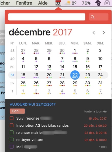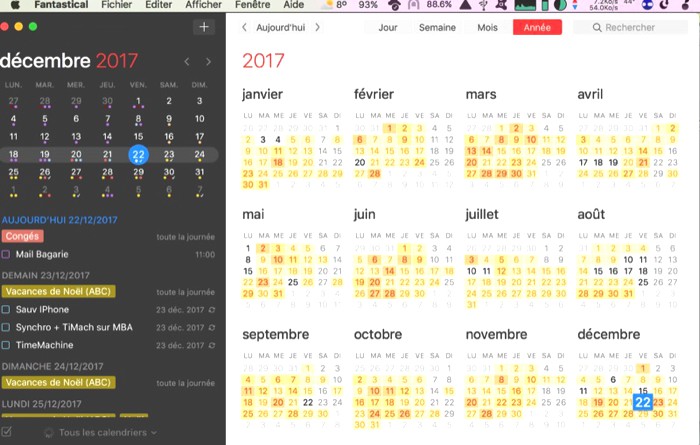 Après avoir essayé Fantastical pour iPhone et Apple Watch (1), j’ai installé la version Mac OS sur le MacBook Pro et l’iMac.