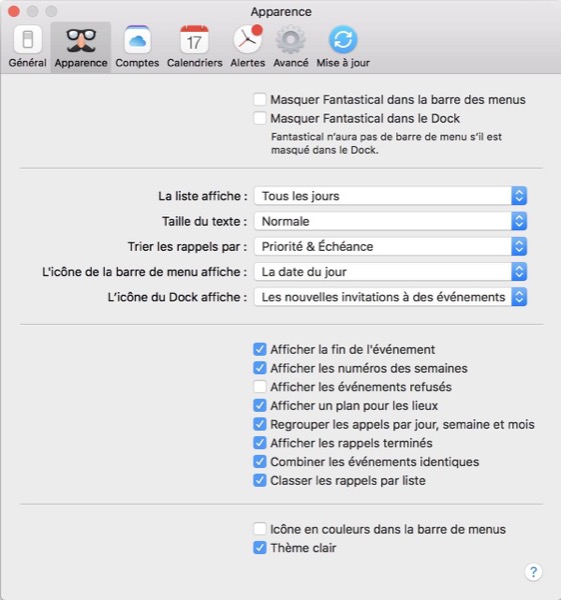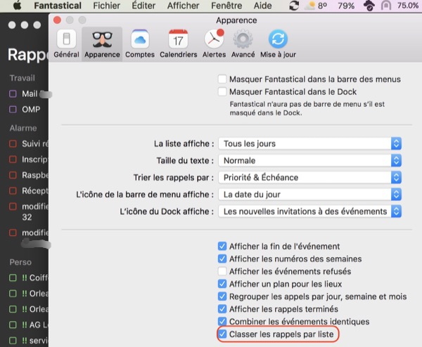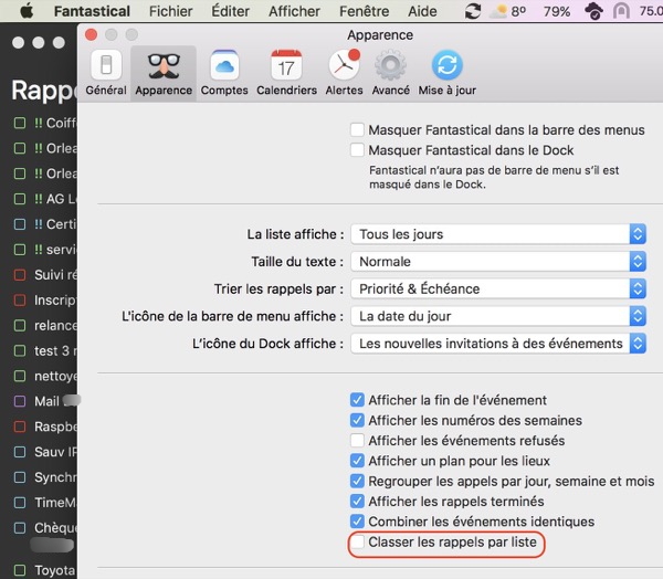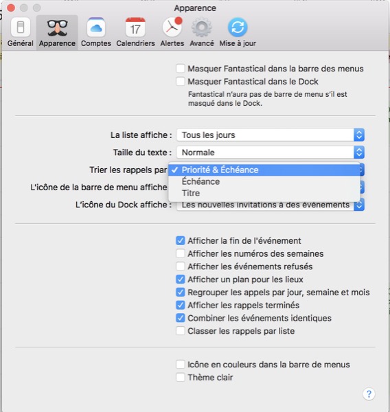 Fantastical dispose de nombreuses options : la gestion des alertes, le tri des rappels, la gestion des lieux et des fuseaux horaires…