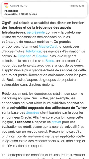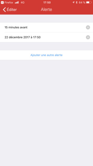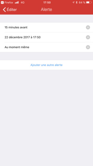 Avec la version iPhone, lorsque la notification d’un événement s’affiche, on peut accéder à l’élément et ajouter une alerte supplémentaire.