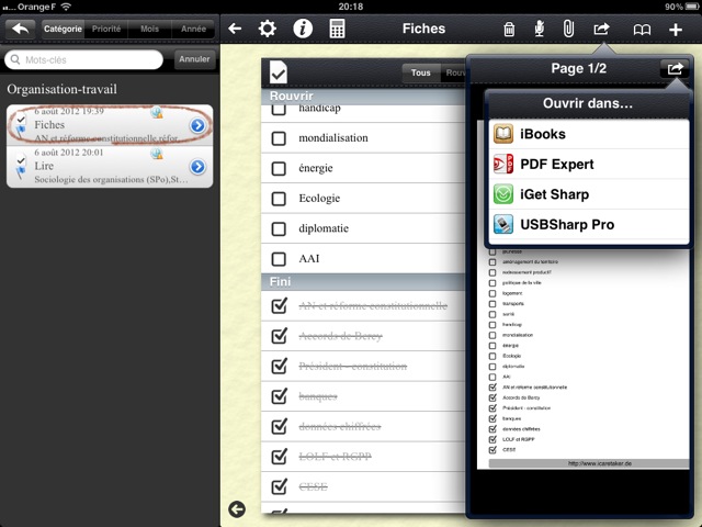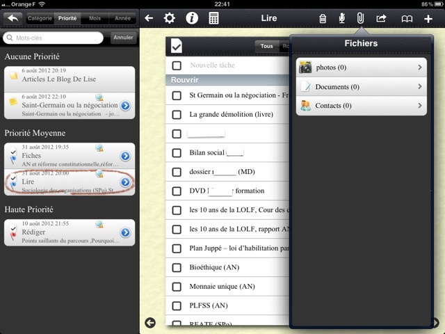 J’ai essayé trois applications pour gérer une liste de tâches, Cloud Outliner, iNotes+ et iThoughts que j’ai déjà décrite sur ce blog.