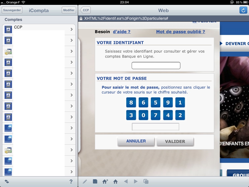 Pour l’instant assez déçu, impossible de synchroniser iCompta avec mon compte labanquepostale. C’est préconfiguré, le mot de passe est correct , après il se plante, impossible de remonter les données. Peu importe l’encodage (qui devrait être automatique).