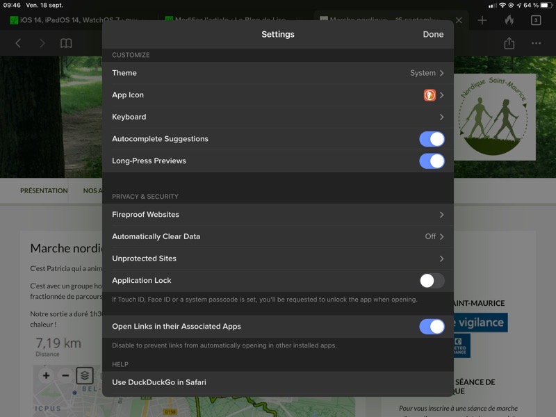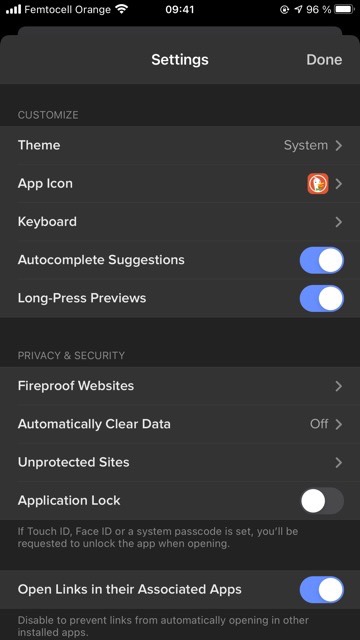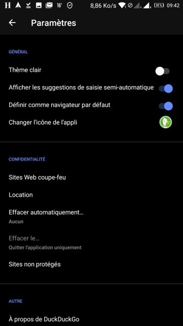 La navigation est tout aussi fluide qu’avec Safari. Parmi les options, DuckDuckGo prend en compte le mode sombre du téléphone par défaut. On peut aussi modifier l’icône de l’app !