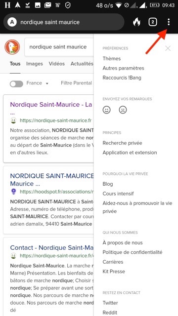 Contrairement aux versions pour iOS et iPadOS, Sur Android, DuckDuckGo est traduit en français ! Il est encore en anglais sur les appareils d’Apple.