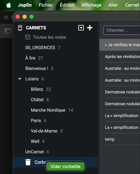 En revanche, les fichiers Notebooks étant enregistrés avec des extensions telles que .txt, .jpeg, .pdf… alors que ceux de Joplin le sont au format .md, j’ai dû récupérer mes notes de Notebooks manuellement !