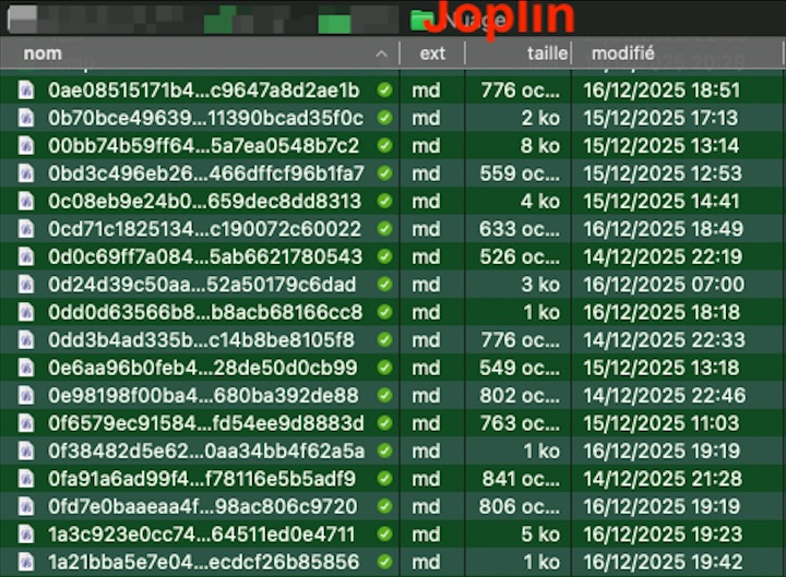 Dans un explorateur de fichiers, ceux de Notebooks apparaissent de façon compréhensible contrairement à ceux de Joplin !!