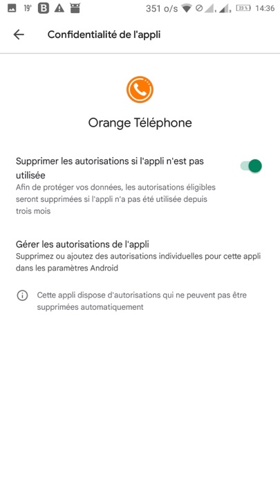 Mais on peut manuellement redonner les droits aux applications si on le souhaite (images 3 & 4) ! et décocher pour chaque app la suppression automatique des autorisations (image 5).