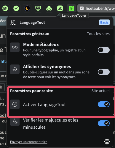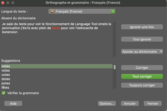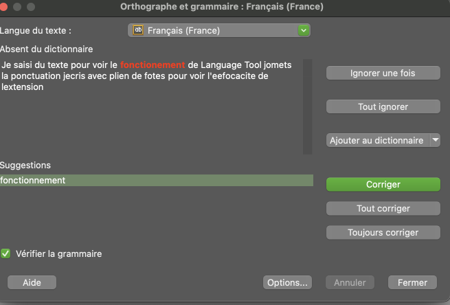 J’utilise, depuis un moment, le correcteur orthographique Langage Tool pour Thunderbird, sous forme d’extension, que j’ai décrite hier. Celle-ci existe pour les navigateurs, certaines applications, et même en tant qu’app pour macOS. J’ai voulu tester Language Tool dans ces différentes configurations.