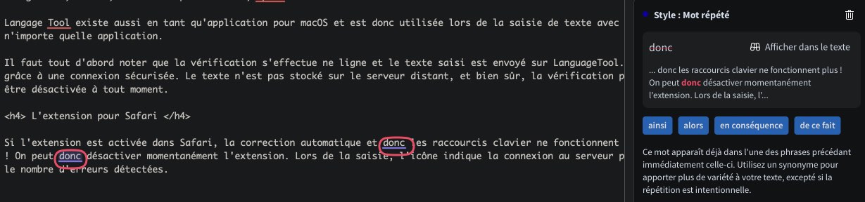 Language Tool peut être utilisée avec Word, OpenOffice, LibreOffice ou Google Docs et aussi Thunderbird, Apple Mail et Gmail.