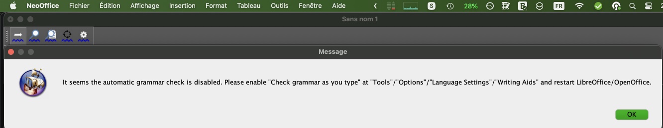 L’extension est présente pour les systèmes d’exploitation iOS, Windows et macOS. Je l’ai installée sur mon Mac. Dans un premier temps, la connexion au serveur de Language Tool était en échec ; pour la faire fonctionner sur le Mac, il est nécessaire de créer un compte, celui-ci étant déjà actif avec NeoOffice, peut-être est-ce la raison pour laquelle j’ai enfin pu l’utiliser.