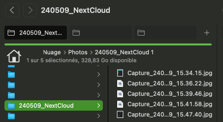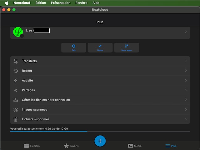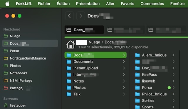 La version Mac de NextCloud permet de synchroniser les fichiers de l’ordinateur, et d’accéder à ces derniers depuis le Finder (ici Forklift),