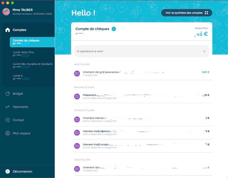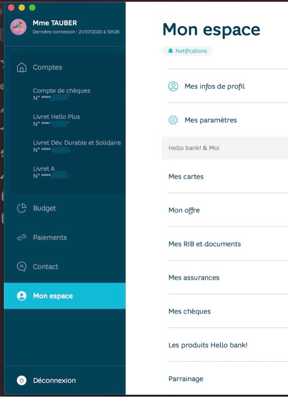 J’avais choisi comme banque principale la banque en ligne HelloBank, car d’une part, au moment où j’ai ouvert un compte, elle proposait une carte bancaire Visa Premier gratuite (elle vient de changer ses formules), mais aussi parce qu’il est possible de déposer des chèques dans une agence BNP, et même de s’adresser à un employé « physique » dans une agence, en cas de besoin.
