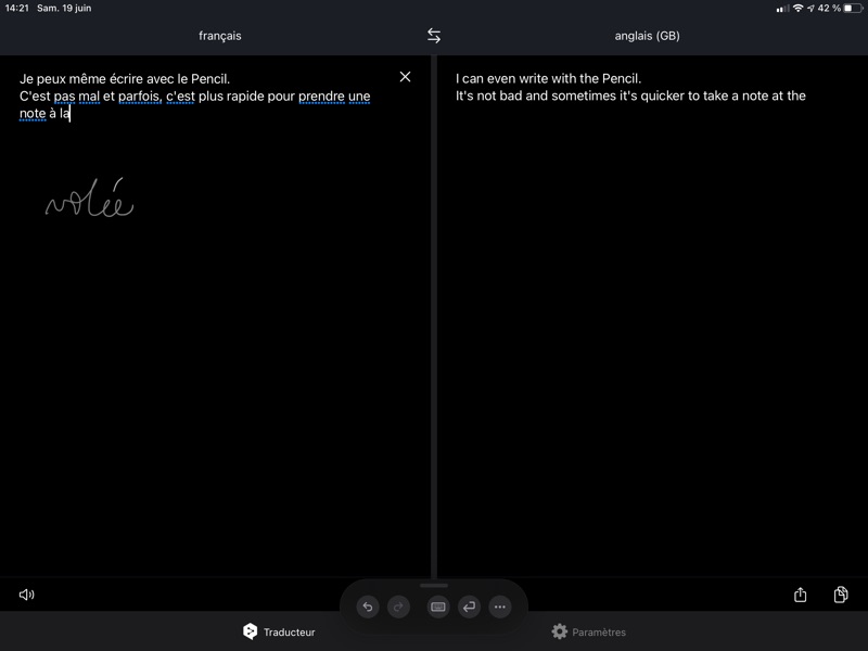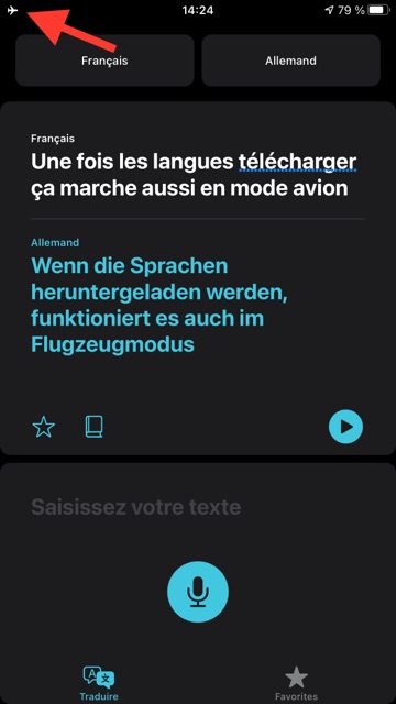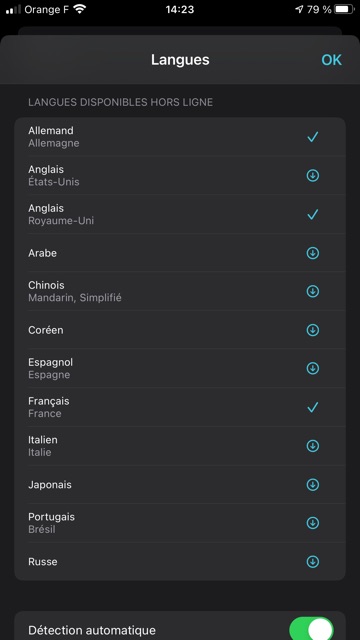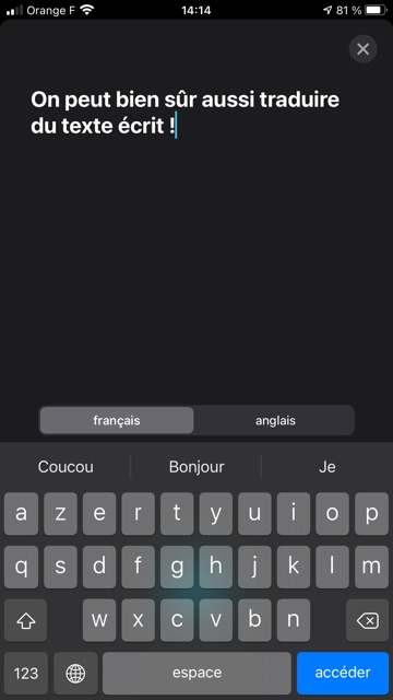De surcroît, l’app Traduire peut être utilisée sans connexion Internet après avoir téléchargé les langues souhaitées ! (chacun(e) aura noté que même si la traduction proposée par l’app Traduire est correcte, le verbe « télécharger » est mal orthographié en français !)