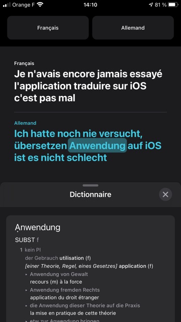 Je n’avais encore jamais essayé l’application Traduire sur l’iPhone, je l’avais même désinstallée ! utilisant DeepL sur le Mac (1).
