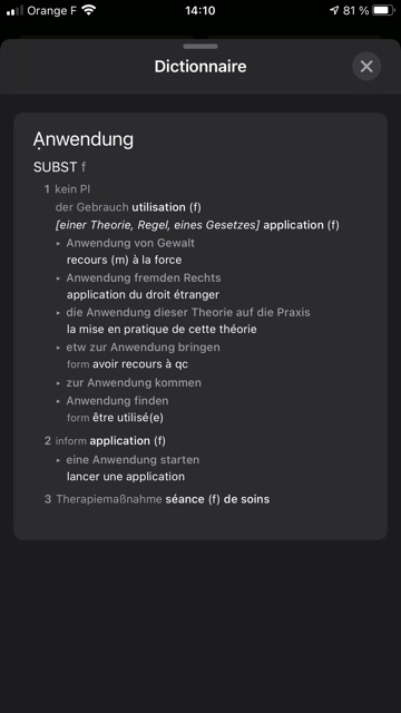 Je n’ai pas réellement testé DeepL sur l’iPhone ; la description de l’app précise qu’il est possible de saisir du texte oral, mais sur mon iPhone 8 Plus, je ne vois pas comment !