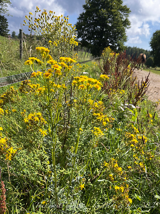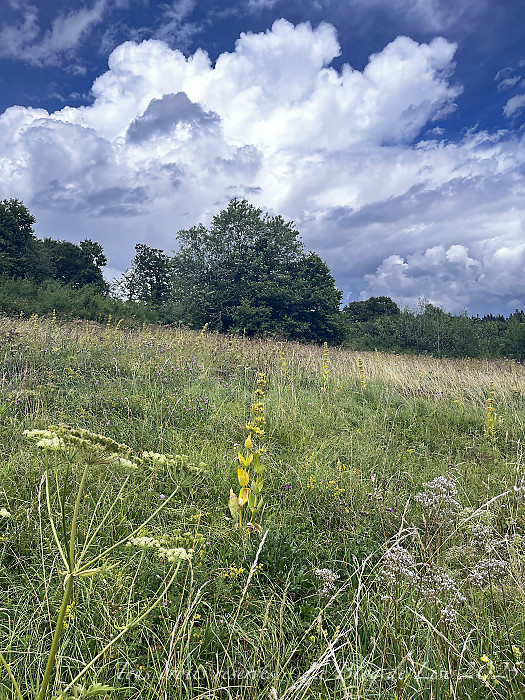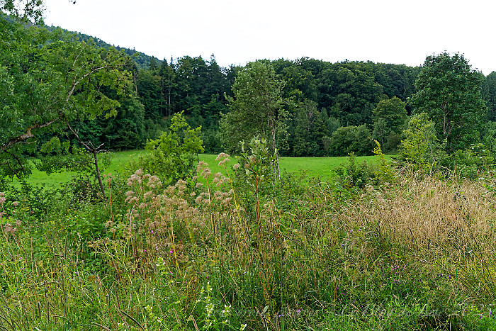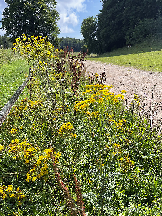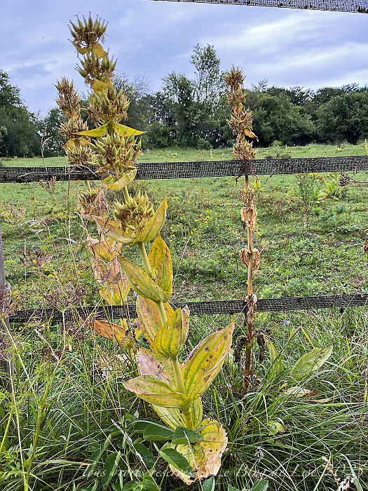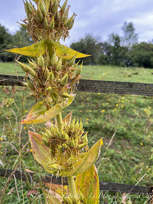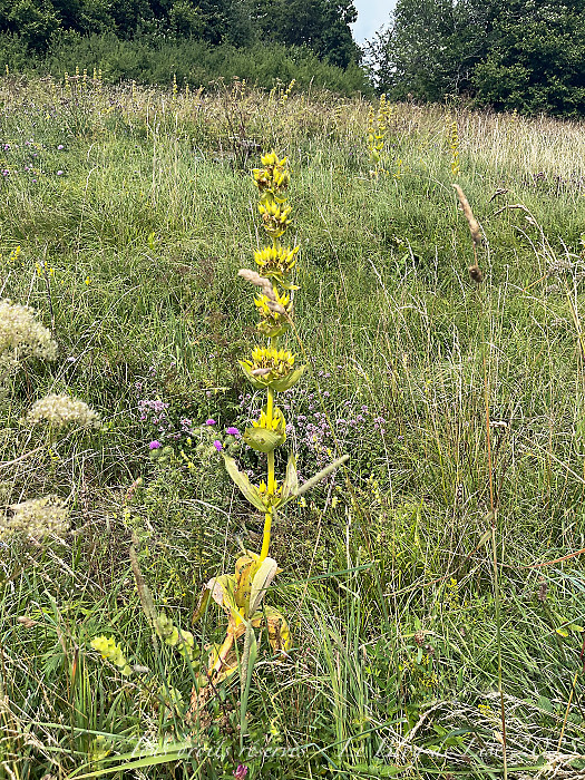 Toujours autour de Cerniébaud, j’ai commencé à allonger mes balades ; après la pluie, je me suis dirigée vers d’autres chemins, où gentianes, lasers à feuilles larges et plantain agrémentaient le paysage…