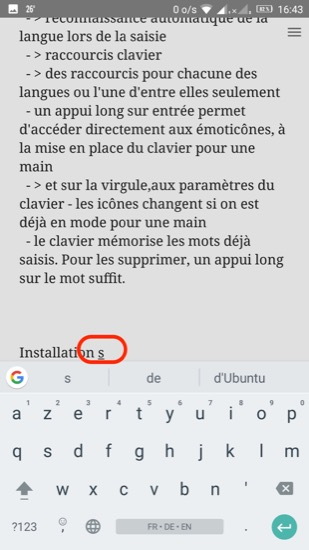 Lorsqu’un mot est automatiquement corrigé, si on veut lui adjoindre une lettre supplémentaire, un espace s’ajoute, ce qui à la longue est peu pénible ! (deux dernières images).