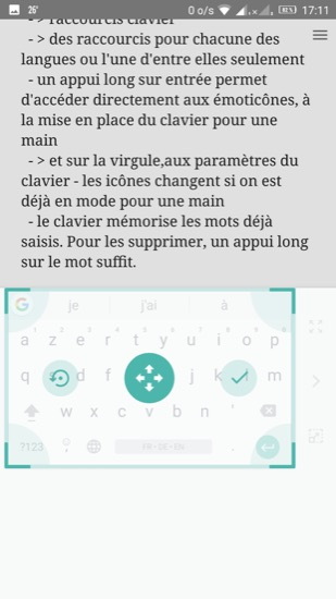 En mode clavier à une main, un tap sur l’icône en bas à droite, permet de le déplacer.