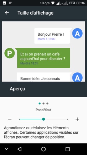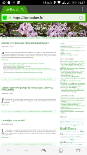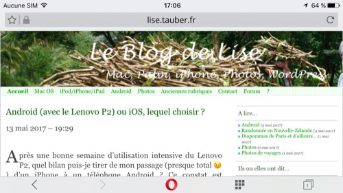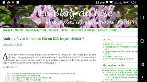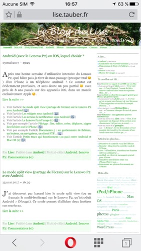 Ci-dessous des copies d’écran montrant l’affichage sur l’iPhone 6 (images 1 & 3) et sur le Lenovo P2 (images 2 & 4). La compression des images n’est pas très favorable au Lenovo !