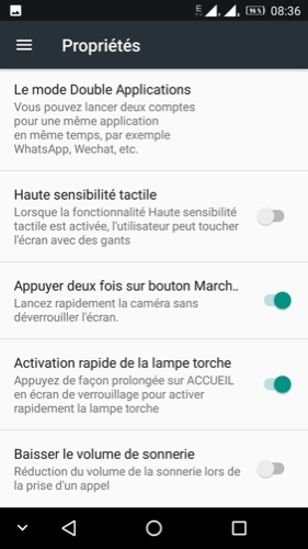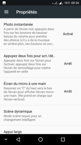 On peut paramétrer la façon de déclencher l’appareil photo, notamment lorsque le Lenovo P2 est en veille.