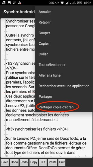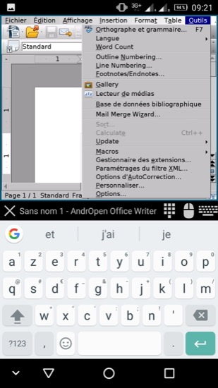 J’ai essayé AndrOpen Office qui se présente comme un éditeur de fichiers Open Office. Mais la reprise de l’interface de l’ordinateur sur un téléphone, même avec un écran de grande taille, est tout à fait inutilisable.