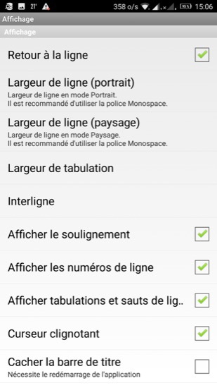 Elle dispose de nombreuses options de configuration, il est possible d’afficher les sauts de ligne, le numéro des lignes…