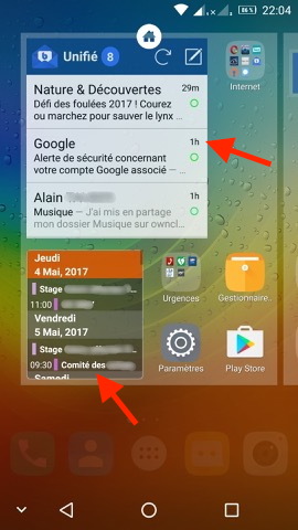 On peut par exemple, depuis un écran d’accueil, visualiser les derniers mails reçus, ses rendez-vous, afficher la météo… Il existe des widgets qui permettent aussi d’afficher ses contacts favoris sur un des écrans d’accueil.