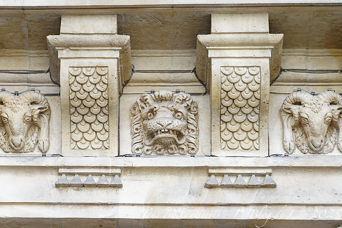 Catherine Beauvais, dite « Cateau-la-Borgnesse » se fait représenter par un mascaron (photo 6) ; les autres mascarons, grimaçant, symbolisent des figures destinées à faire fuir les mauvais esprits.