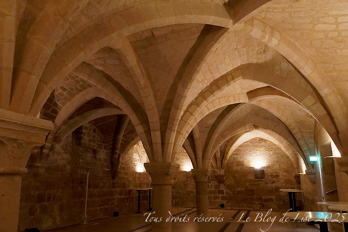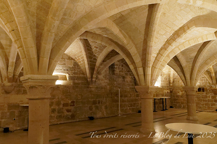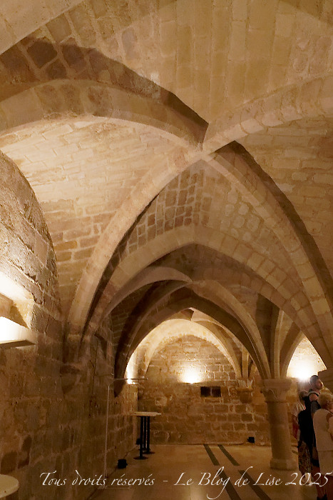 Sous la cour se trouvent des caves, avec des voûtes de style gothique (photos 10 à 13), constructions d’origine, que nous avons visitées. Elles servent actuellement de lieu de réception et à quelques activités pour le personnel de la cour d’appel.