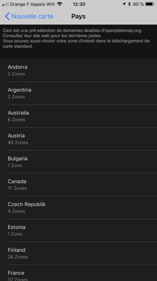 On peut également télécharger les pistes de ski de différents domaines pré-sélectionnés.