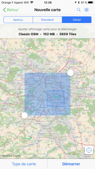 Avec la version Pro, on peut télécharger des cartes de dimension plus importante qu’avec la version gratuite. Les cartes de grande taille n’occupent d’ailleurs pas un espace considérable ; celle de Paris et de sa proche banlieue par exemple prend tout juste 145 Mo.