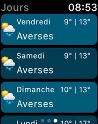 Un glisser vers la gauche affiche les prévisions horaires, et un supplémentaire les prévisions quotidiennes.