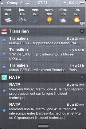 Les alertes de RATP, Transilien et Métro Paris nécessitent bien sûr une connexion Internet.