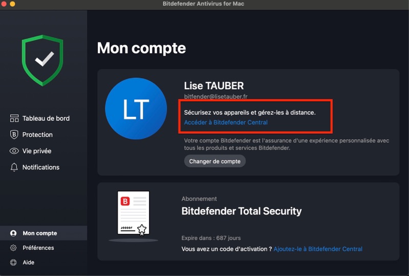 La suite antivirus Bitdefender se compose d’une application dédiée à chaque système, iOS, macOS, Android, Windows, et d’un accès à Bitdefender Central pour gérer depuis un appareil ses autres machines.