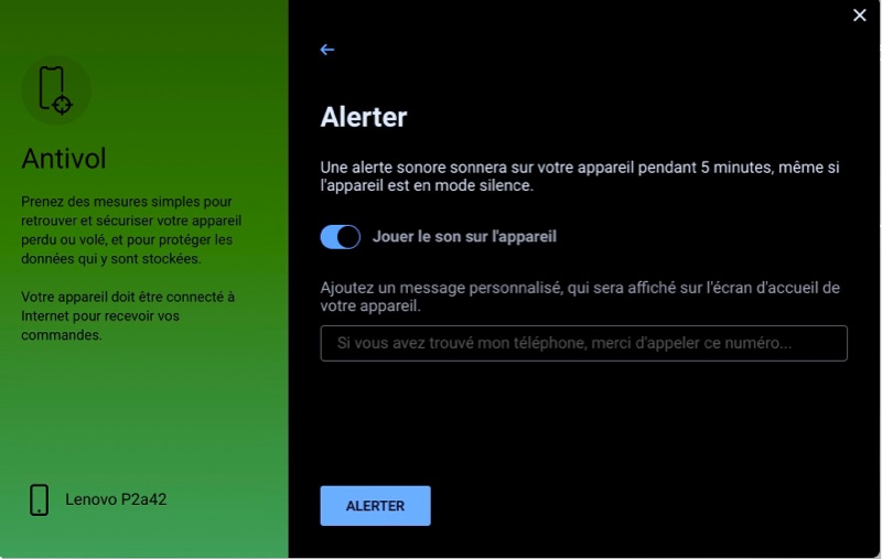 Depuis macOS, et l’application Antivirus pour Mac, on accède à la page web de Bitdefender Central, qui affiche l’ensemble des appareils protégés. Depuis cette interface on peut à distance localiser son téléphone Android, émettre un son et lancer une analyse, mais pas ses appareils iOS.