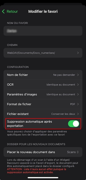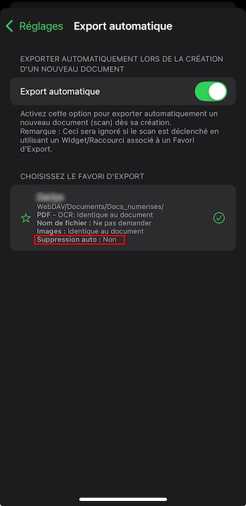 On peut également choisir de supprimer automatiquement le document de son iPhone après l’exportation.