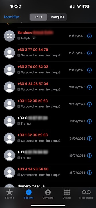 – Ouvrir les réglages : blocage d’appels – il est bien sélectionné