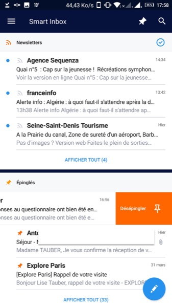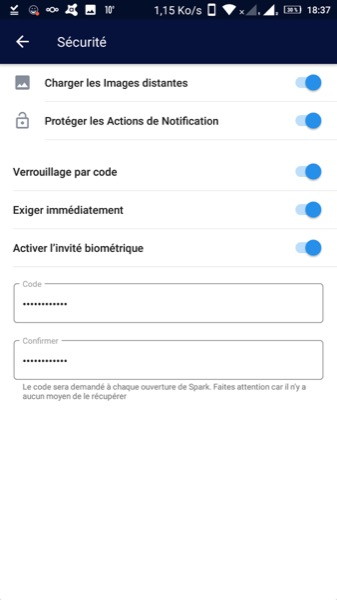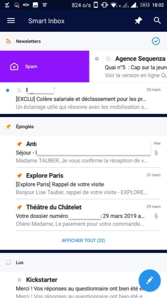 Sous Android, Spark propose les même fonctionnalités que sous iOS :
