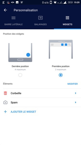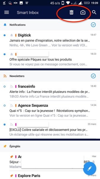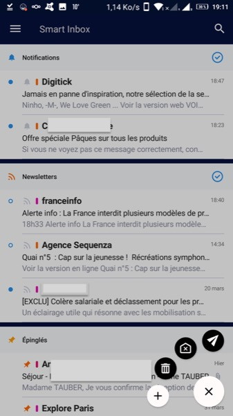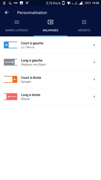On peut personnaliser les gestes pour marquer les messages comme lus, non lus, les mettre à la corbeille ou les épingler.