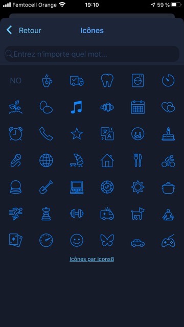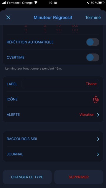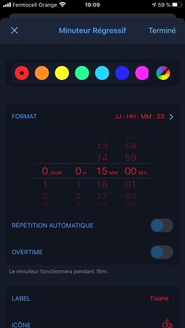 On peut créer, sur l’iPhone, même avec la version gratuite, les minuteurs souhaités, leur attribuer couleurs et icônes ;