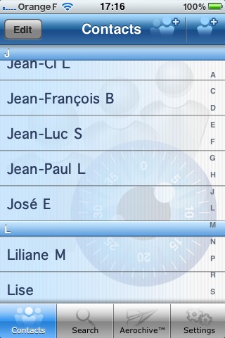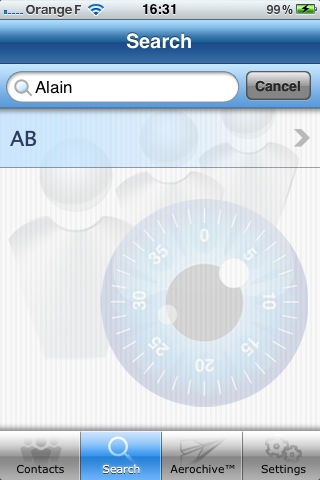 - les contacts sauvegardés sur l’ordinateur accessibles via l’application Aeroarchive ;